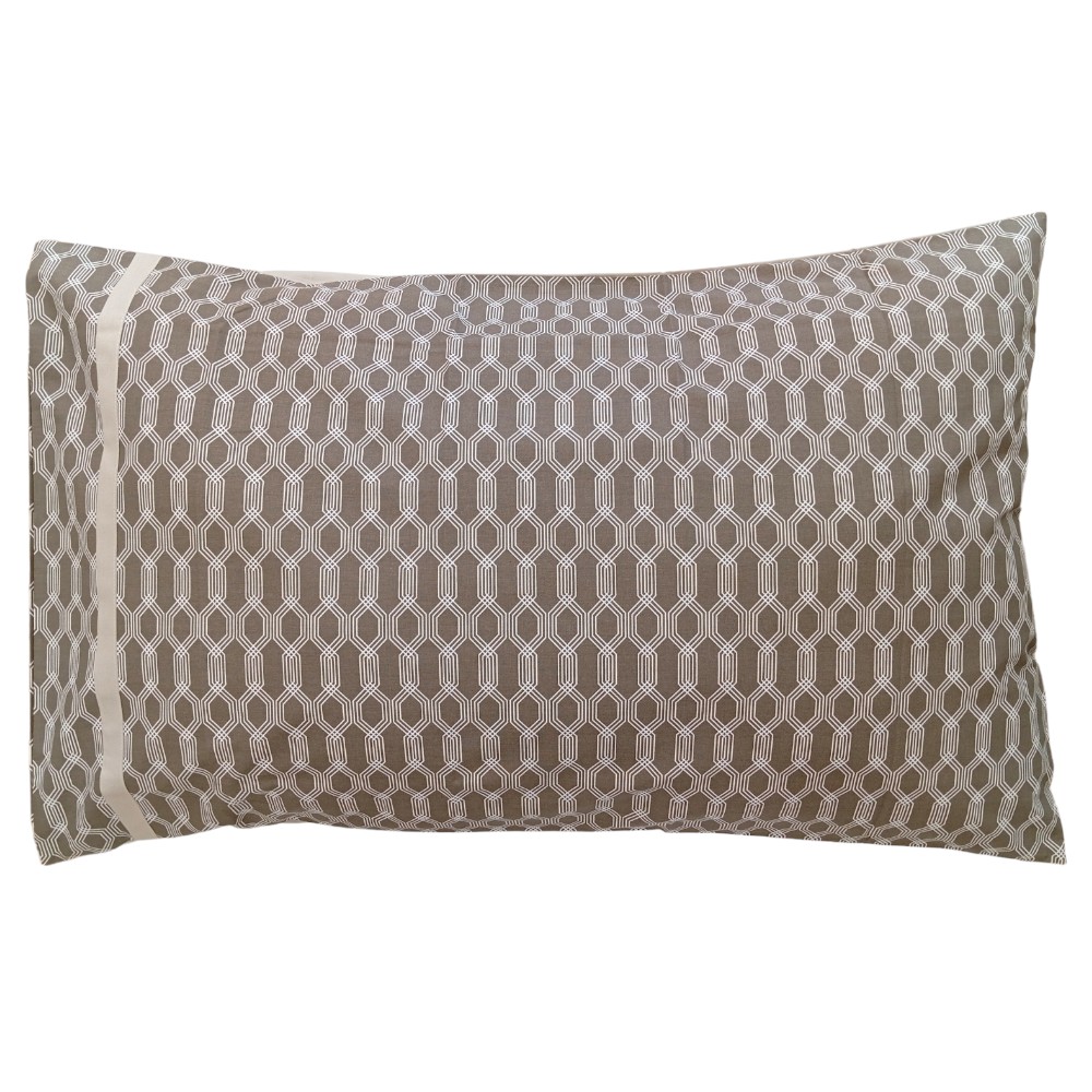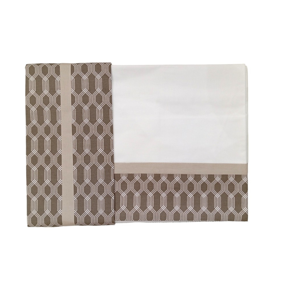 Il lenzuola di sopra e le due federe sono inoltre rifinite con un elegante bordino applicato che esalta la geometria della stampa.