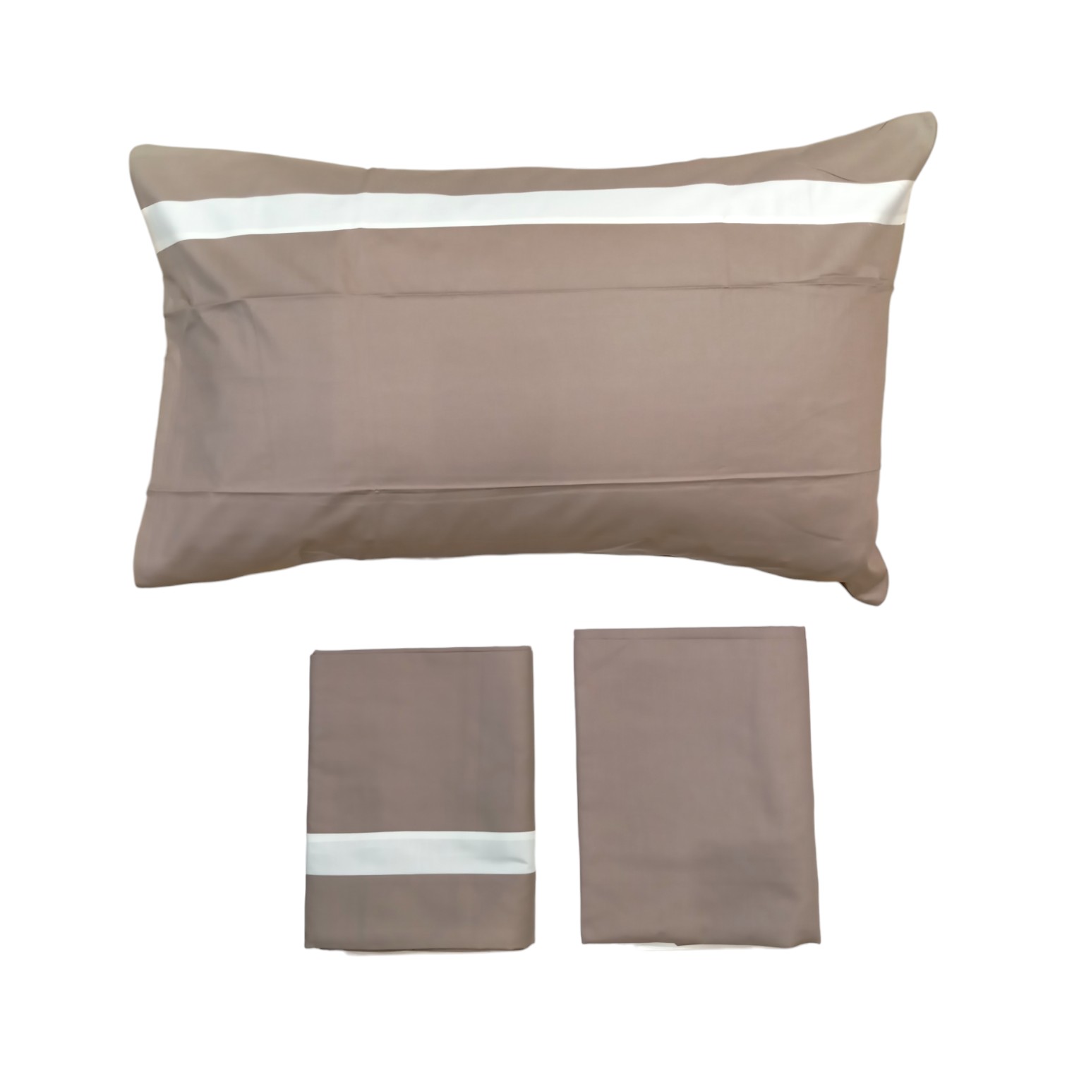 Il completo è in puro cotone " pelle ovo ", finissimo e resistente, con un rapporto tra trama e ordito che rende il prodotto morbido e allo stesso tempo compatto, resistente all'usura e ai lavaggi.