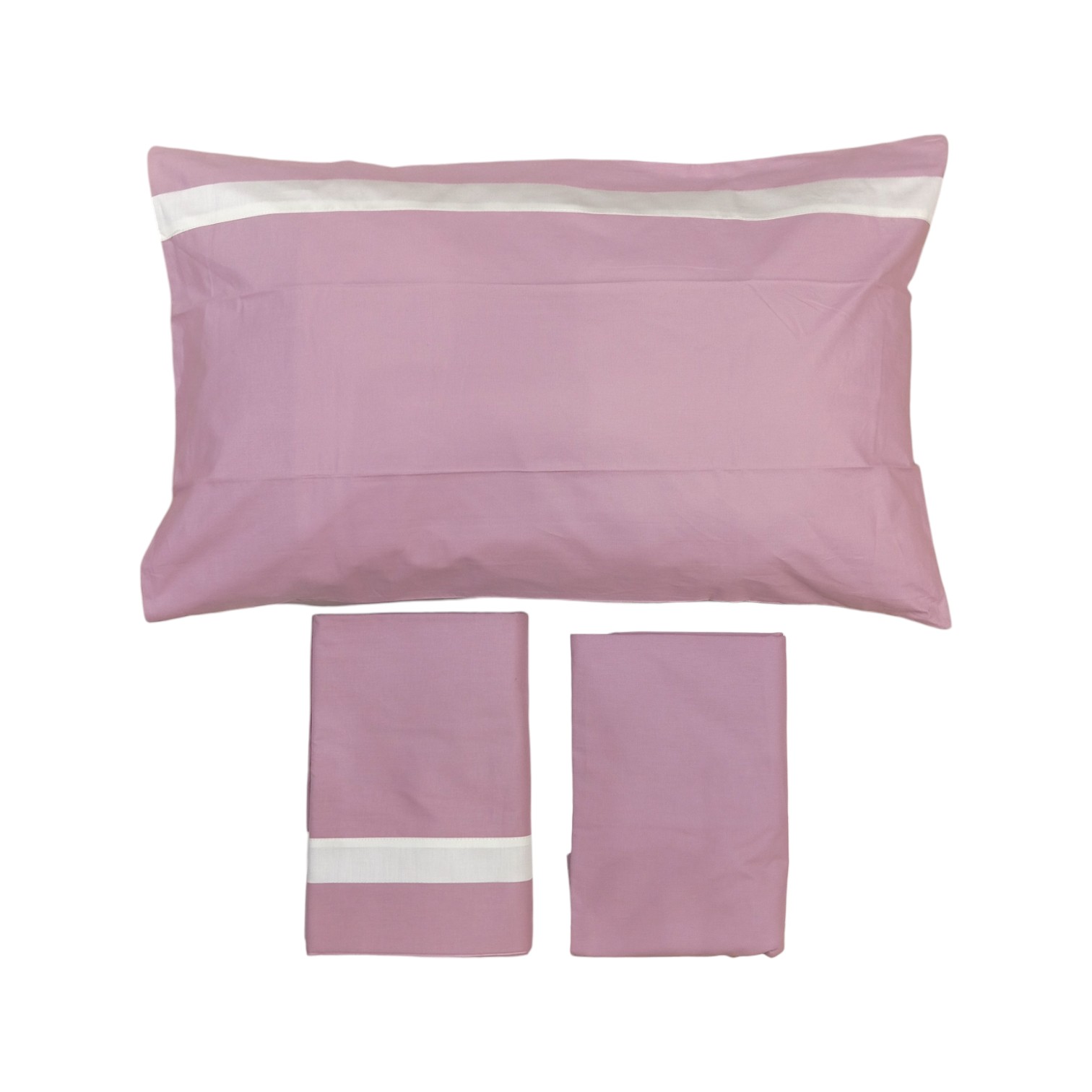 Il completo è in puro cotone " pelle ovo ", finissimo e resistente, con un rapporto tra trama e ordito che rende il prodotto morbido e allo stesso tempo compatto, resistente all'usura e ai lavaggi.