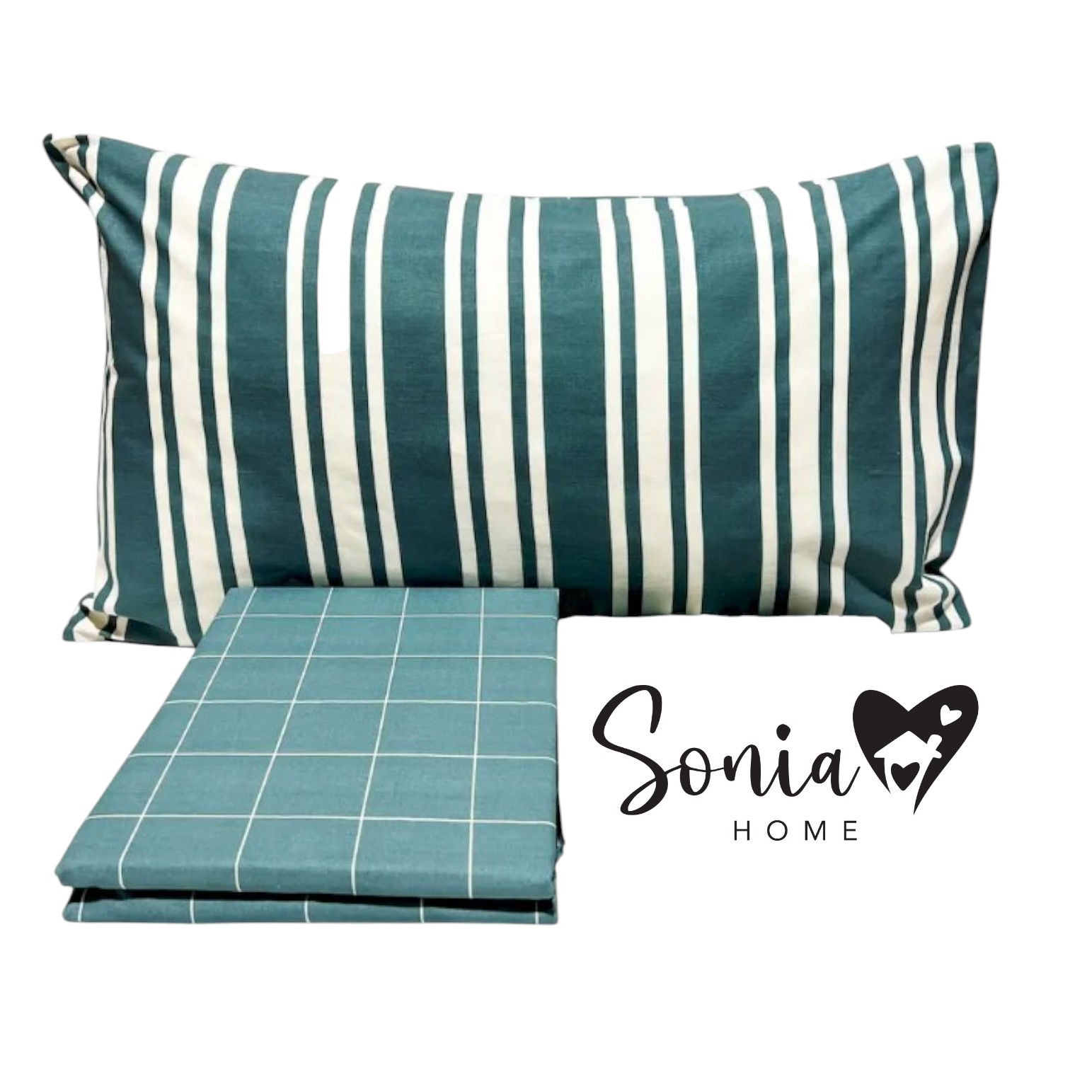 Il sacco ha una da una parte un delicato quadretto mentre l'altro lato è a righe. Allo stesso modo anche la federa è doubleface.