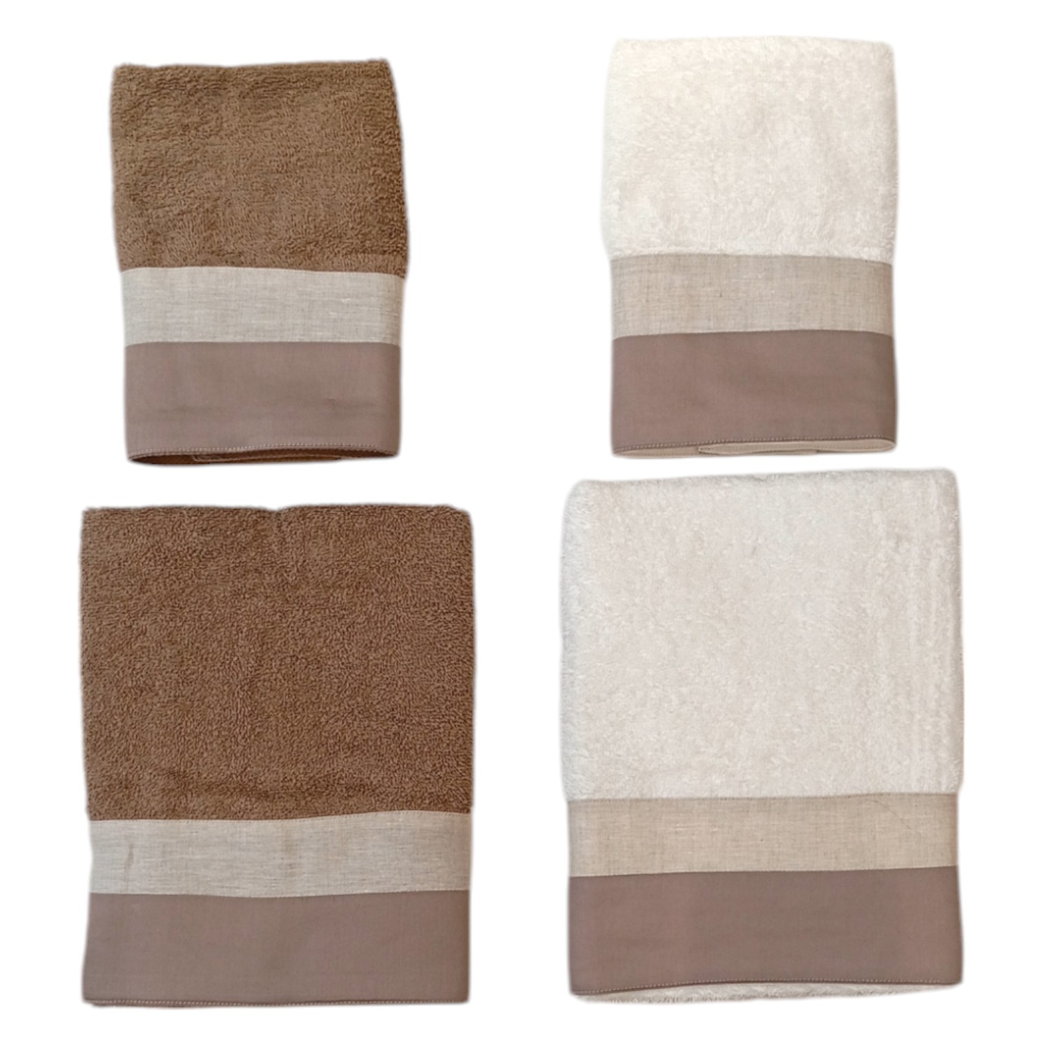 I nostri asciugamani da bagno in morbidissima spugna 100% cotone da 450 gr/mq sono totalmente artigianali. Sono rifiniti con una bellissimo doppio bordo raso e lino che impreziosisce il set. Perfetto da regalare!!!