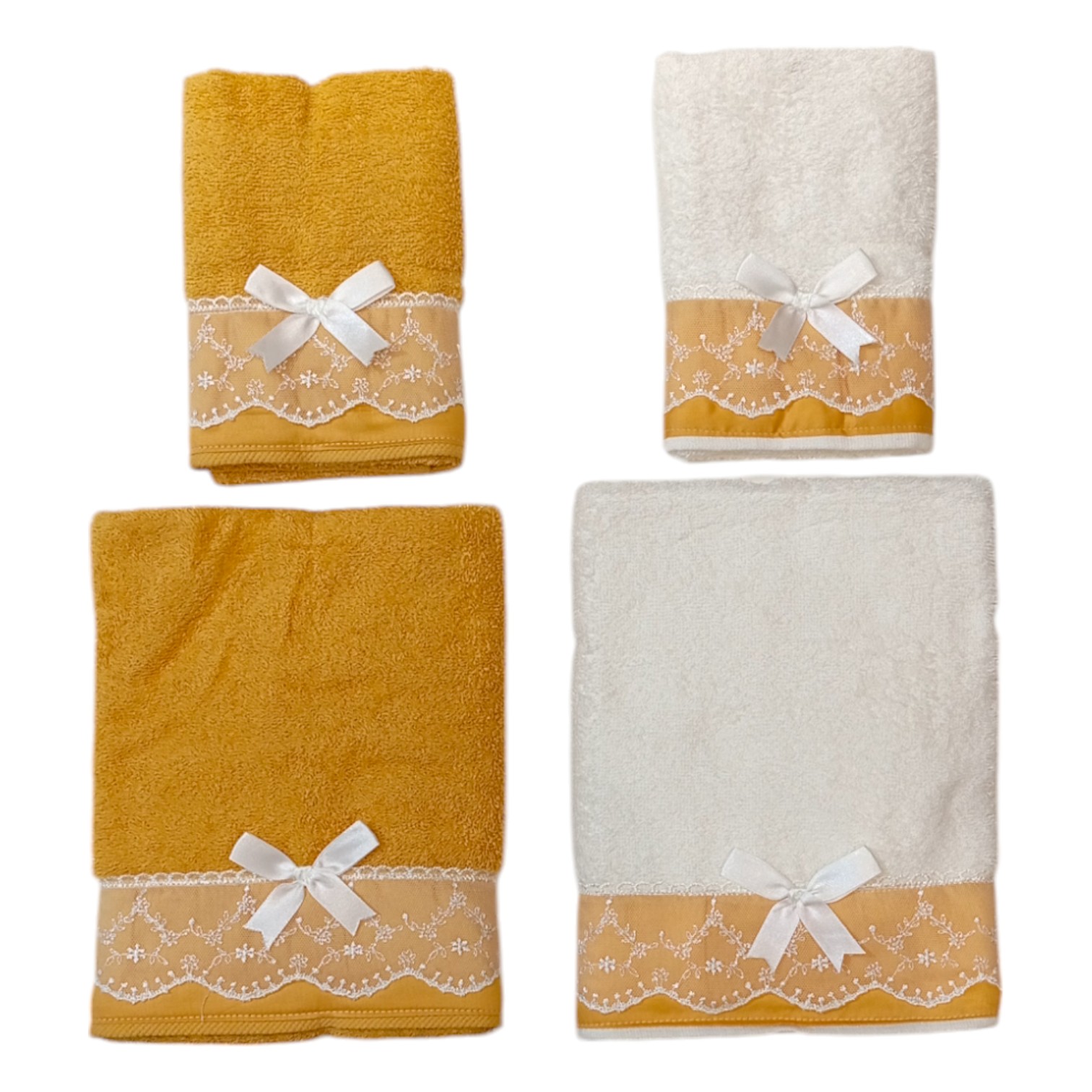 I nostri asciugamani da bagno in morbidissima spugna 100% cotone da 450 gr/mq sono totalmente artigianali. Sono rifiniti con una bellissima balza in raso a cui va a sovrapporsi una elegante applicazione in pizzo macramè. Perfetto da regalare!!!