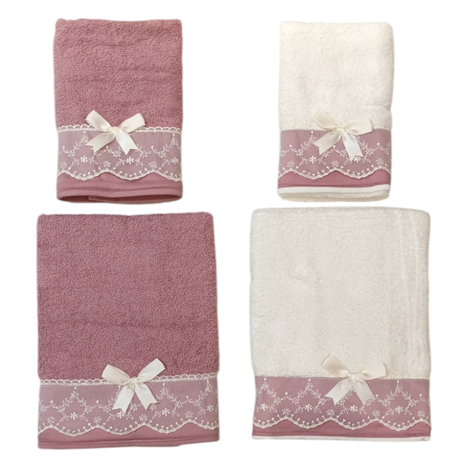 I nostri asciugamani da bagno in morbidissima spugna 100% cotone da 450 gr/mq sono totalmente artigianali. Sono rifiniti con una bellissima balza in raso a cui va a sovrapporsi una elegante applicazione in pizzo macramè. Perfetto da regalare!!!