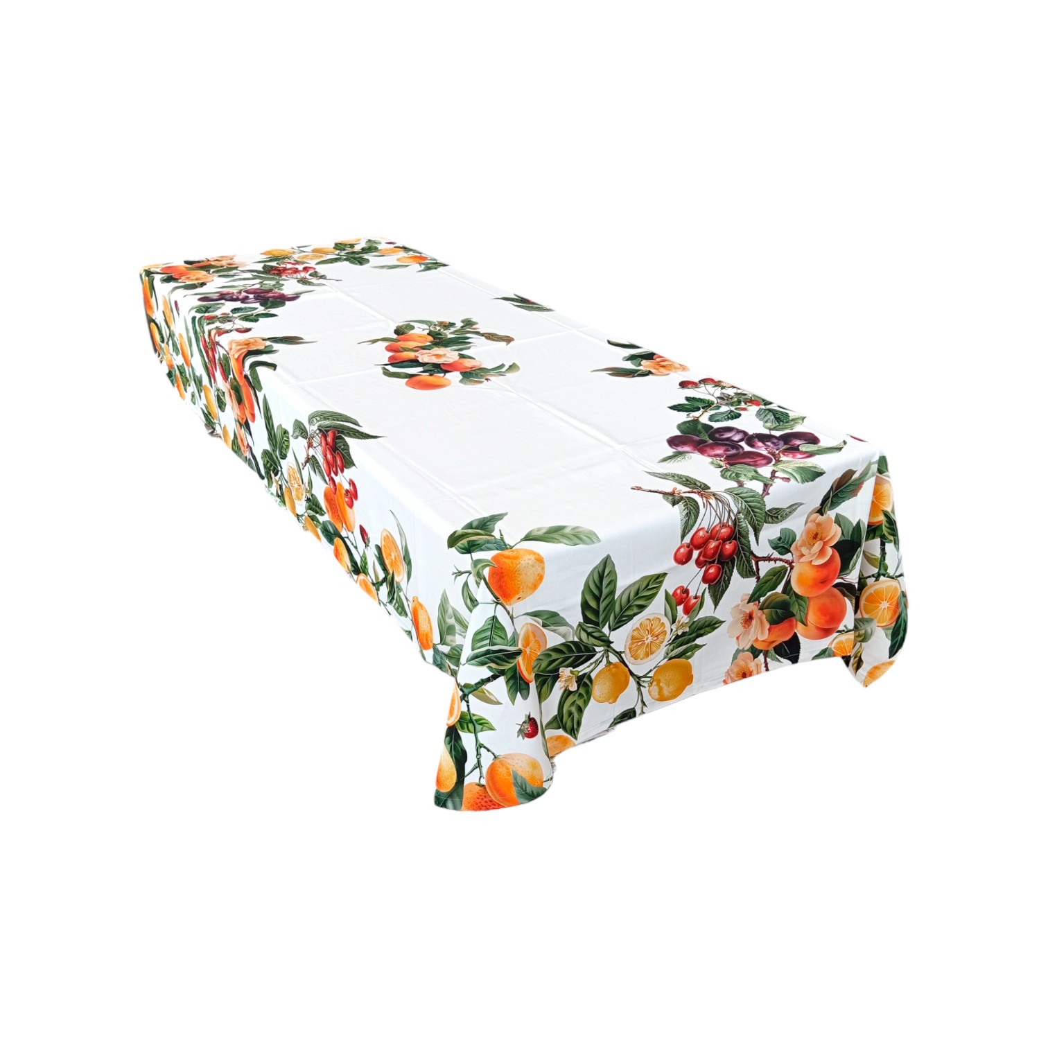 Porta la freschezza e i colori vivaci con la nostra esclusiva tovaglia in stampa digitale "Fruit". Questa splendida tovaglia è piazzata ed è realizzata con una tecnica di stampa digitale all'avanguardia che cattura ogni dettaglio con una nitidezza sorprendente e colori brillanti che non sbiadiscono nel tempo.