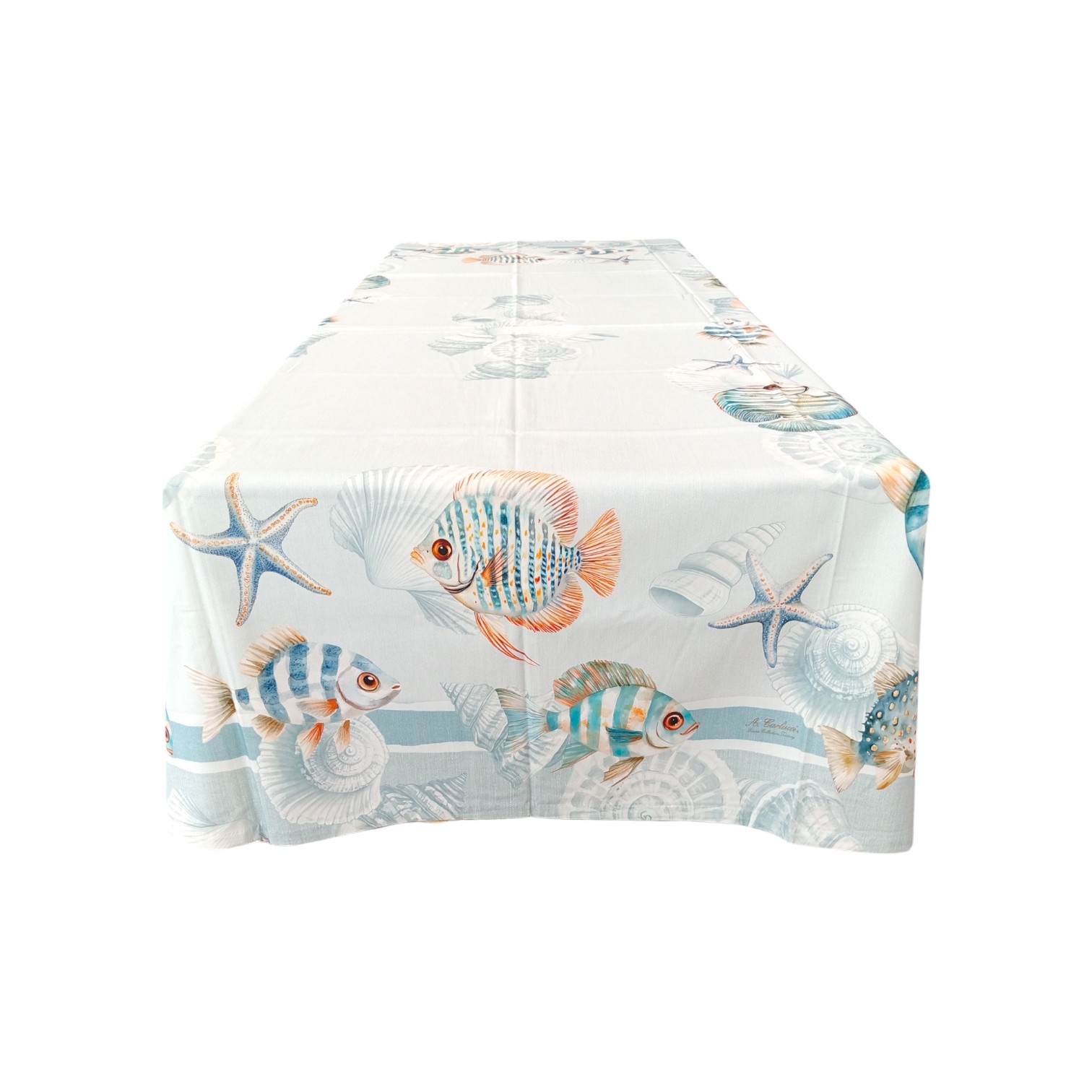Porta la freschezza e i colori vivaci con la nostra esclusiva tovaglia in stampa digitale "Pesci". Questa splendida tovaglia è piazzata ed è realizzata con una tecnica di stampa digitale all'avanguardia che cattura ogni dettaglio con una nitidezza sorprendente e colori brillanti che non sbiadiscono nel tempo.