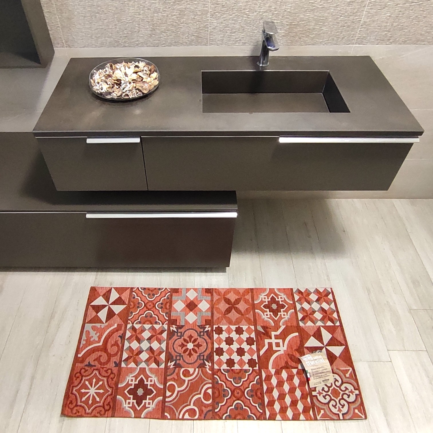 Il tappeto Cementine ricerca uno stile caldo,che sa di mare e di costiera amalfitana.