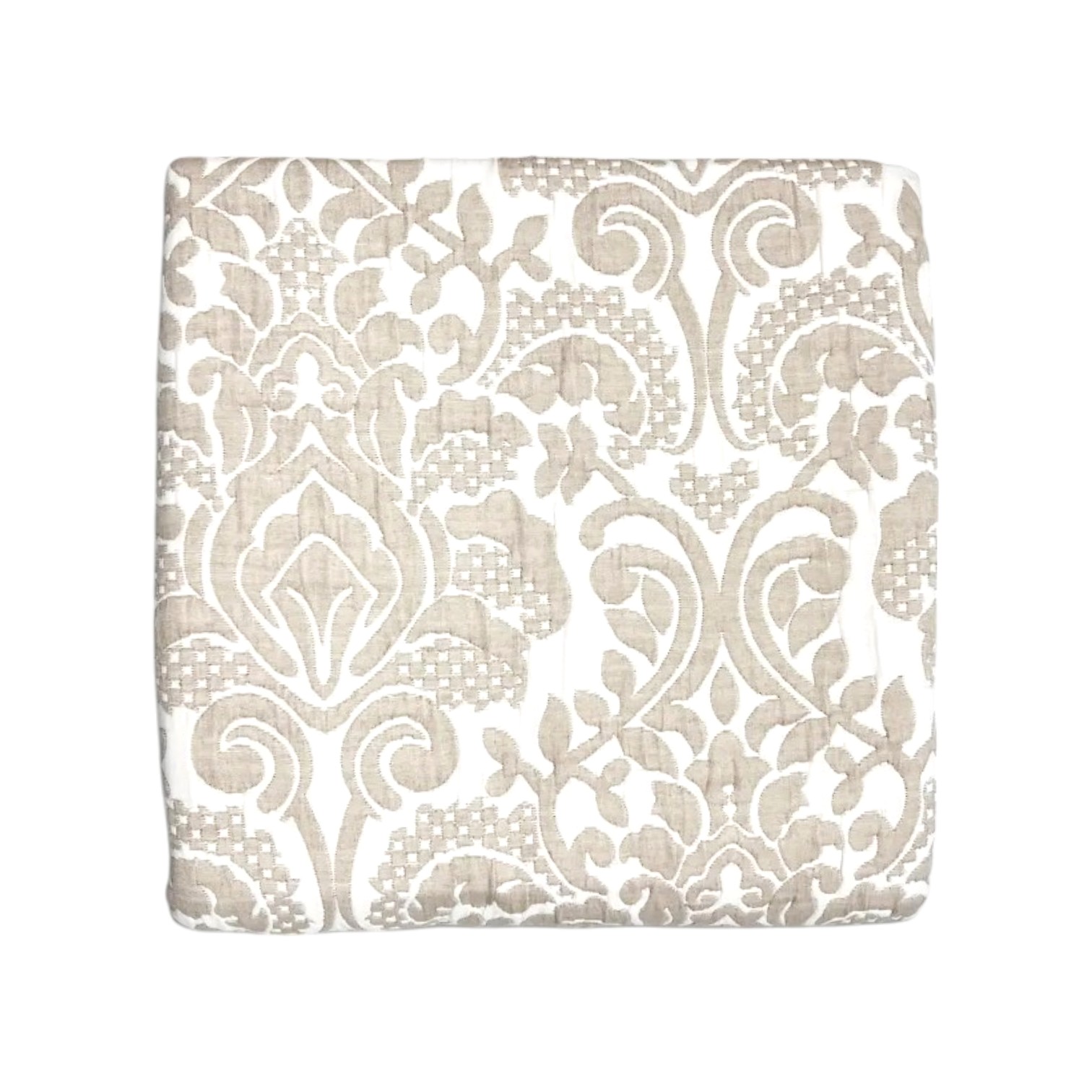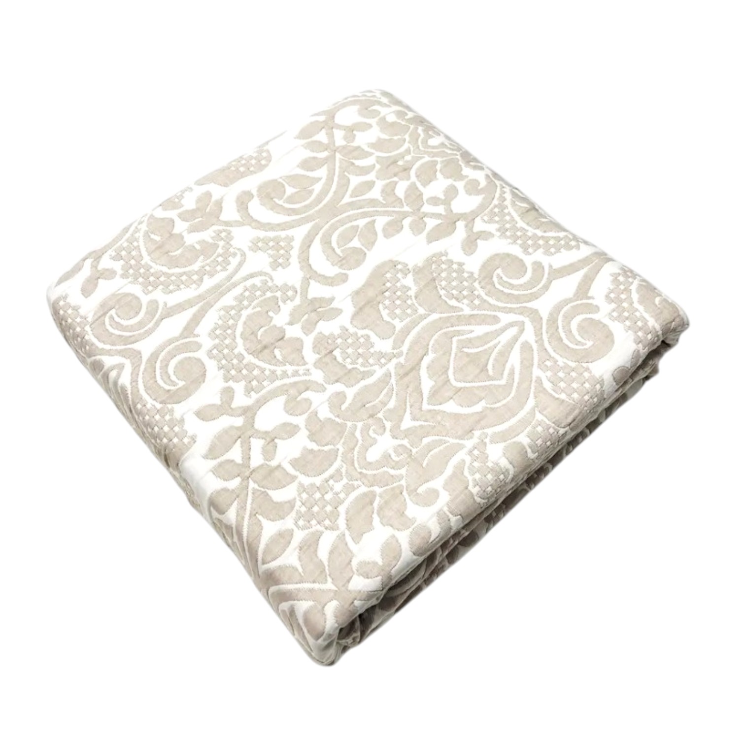 Trasforma la tua camera da letto con il tocco sofisticato del nostro copriletto jacquard. Caratterizzato da una pregiata lavorazione a rilievo, questo copriletto presenta un intramontabile motivo damascato che aggiunge profondità, texture e un'eleganza senza tempo al tuo arredo.