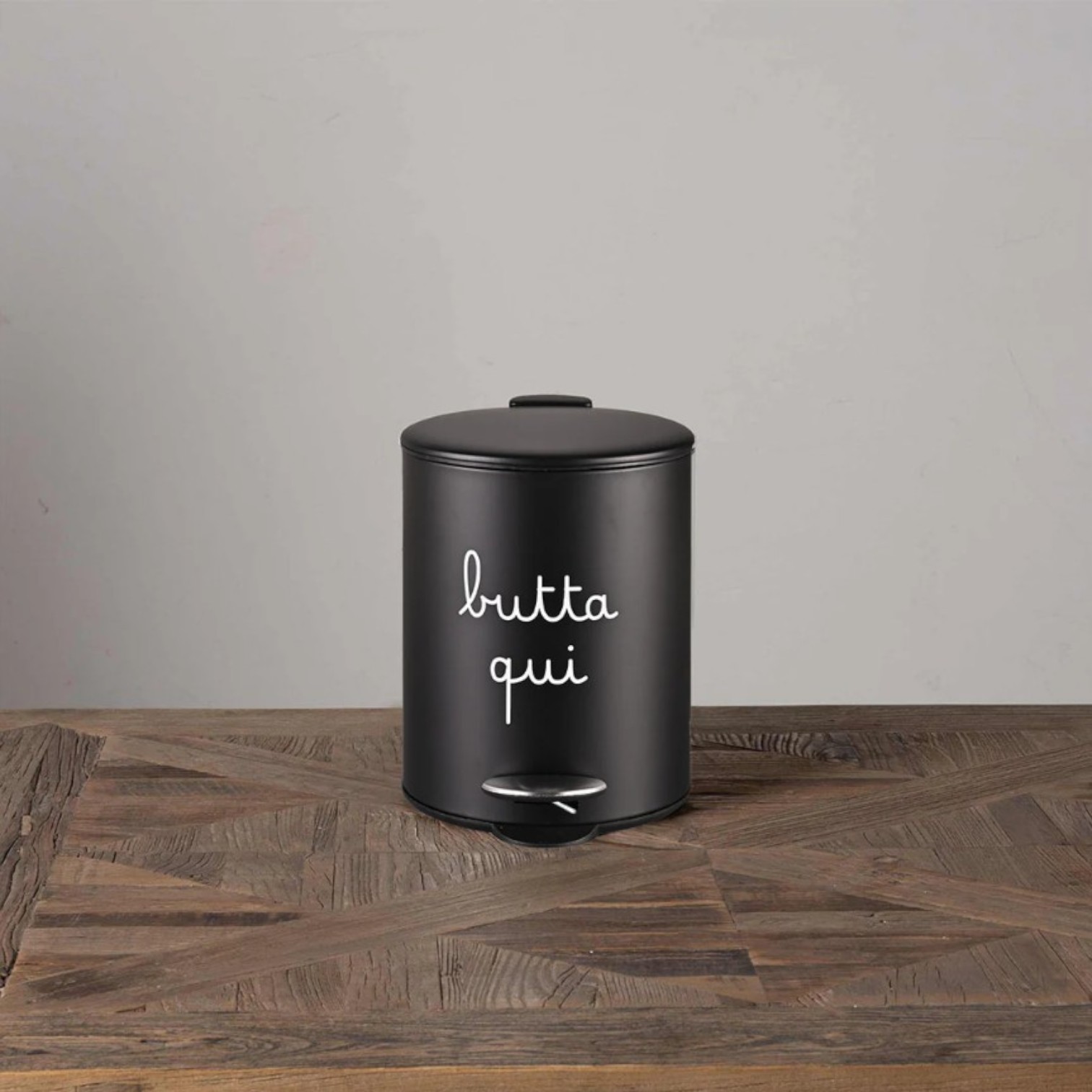 Pattumiera da interno 5 litri decoro Butta qui - nero - Dim. 25 x 19 x h27 cm