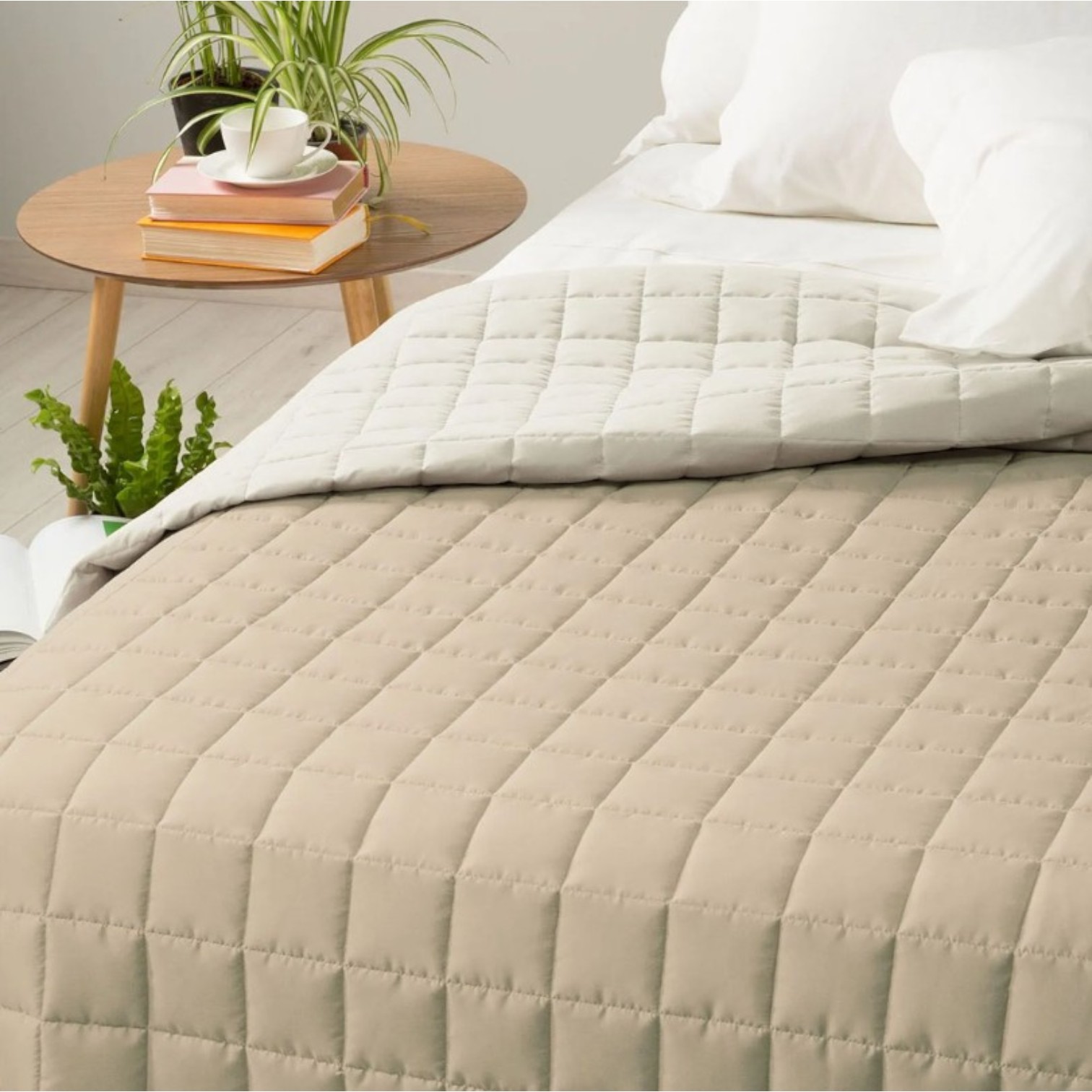 Boutis trapuntato double face, bicolore. Trapuntino dalla classica trapuntatura a quadretto, adatto a tutti gli ambienti, per camere moderne ma anche per arredamenti in arte povere o più romantici.