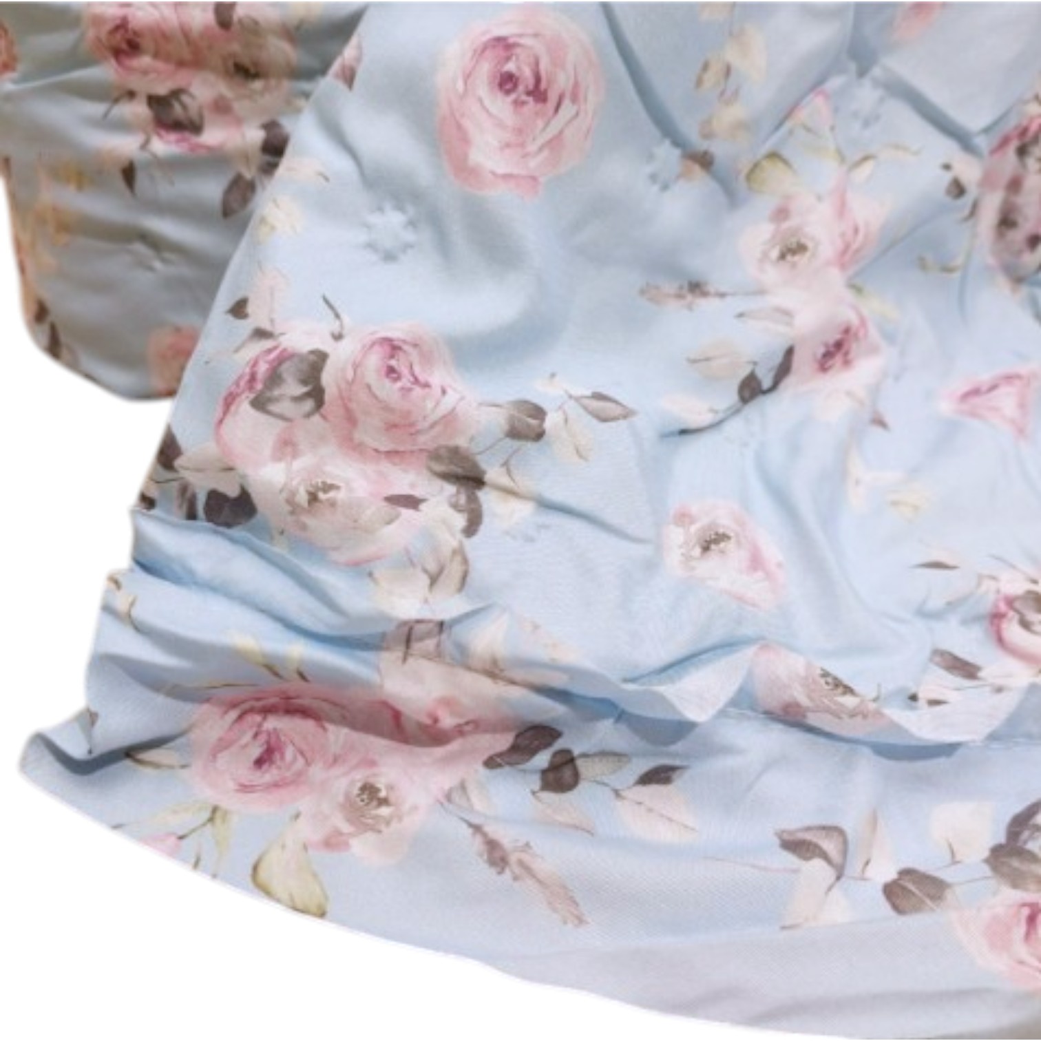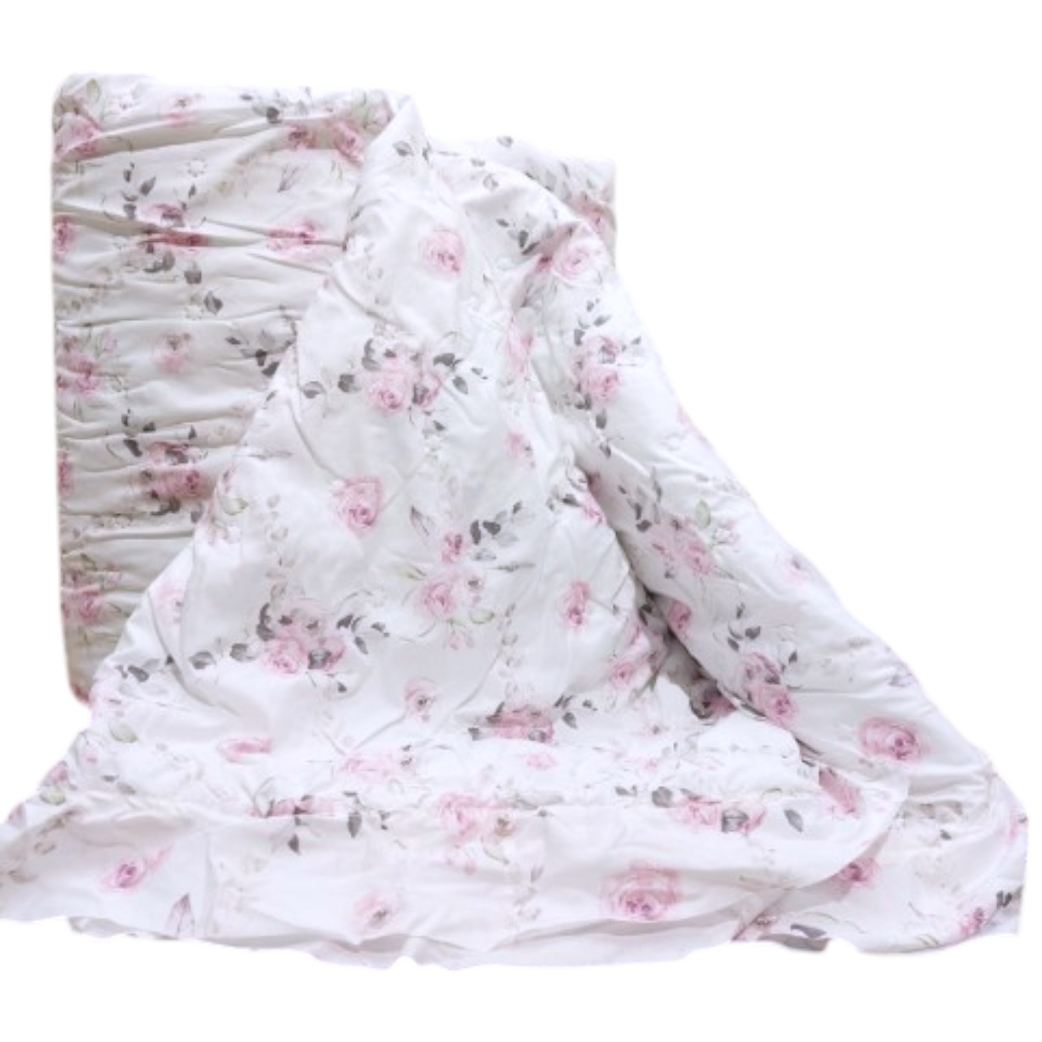 Quilt termosaldato con volant. La particolare trapuntatura termosaldata crea un bellissimo colpo d'occhio. Il trapuntino è particolarmente morbidoso e si adatta bene a più stili con la sua fantasia floreale evergreen.