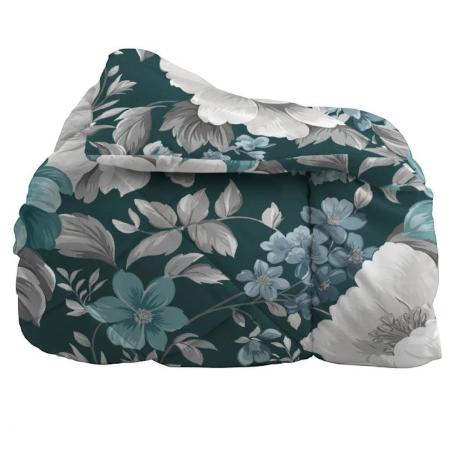Immergiti in un'atmosfera regale e accogliente con questa trapunta dal motivo floreale elegante e sofisticato. Il design fiorito, ricco di dettagli, poggia su un opulento fondo verde petrolio scuro o verde smeraldo profondo, un colore di grande tendenza.