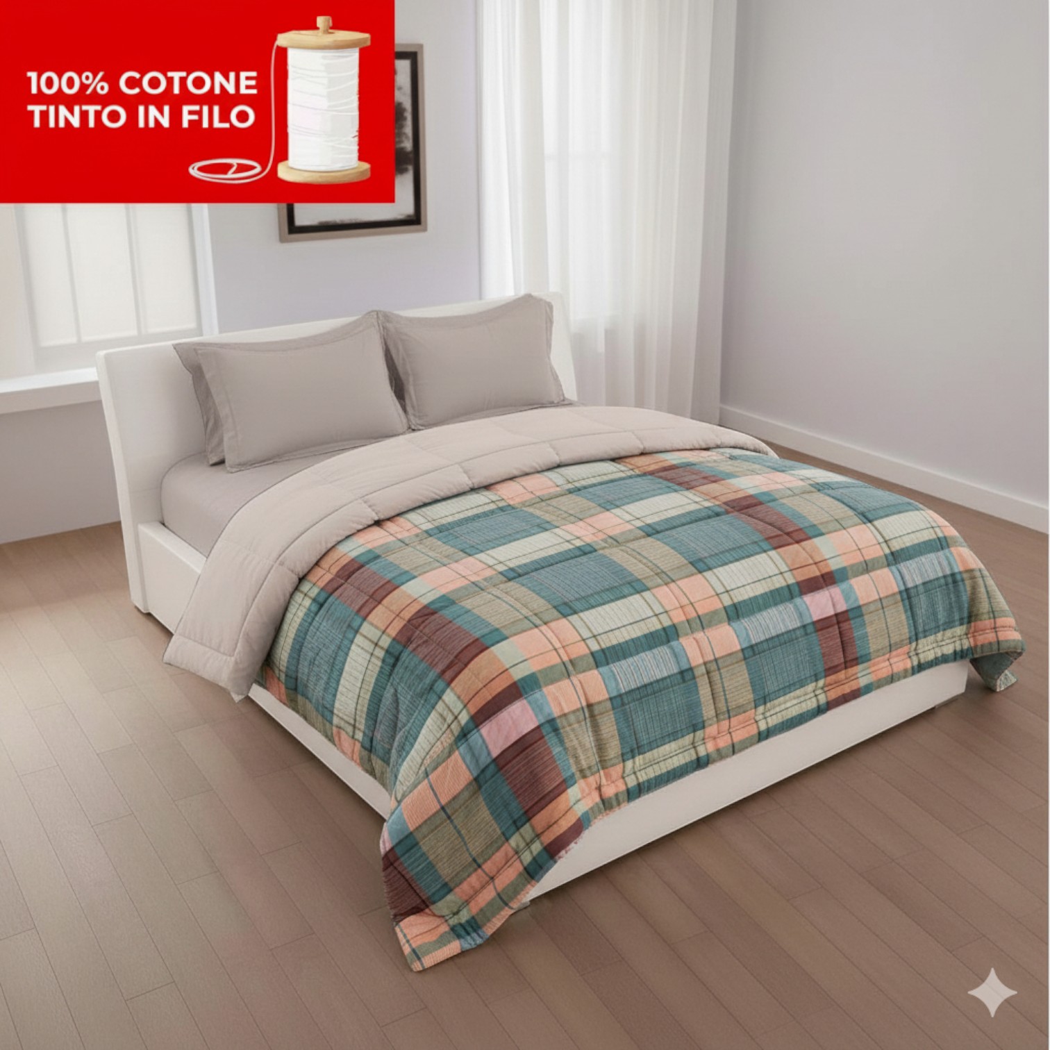 Trapunta Invernale Matrimoniale Check Elegance Cotone Tinto in Filo