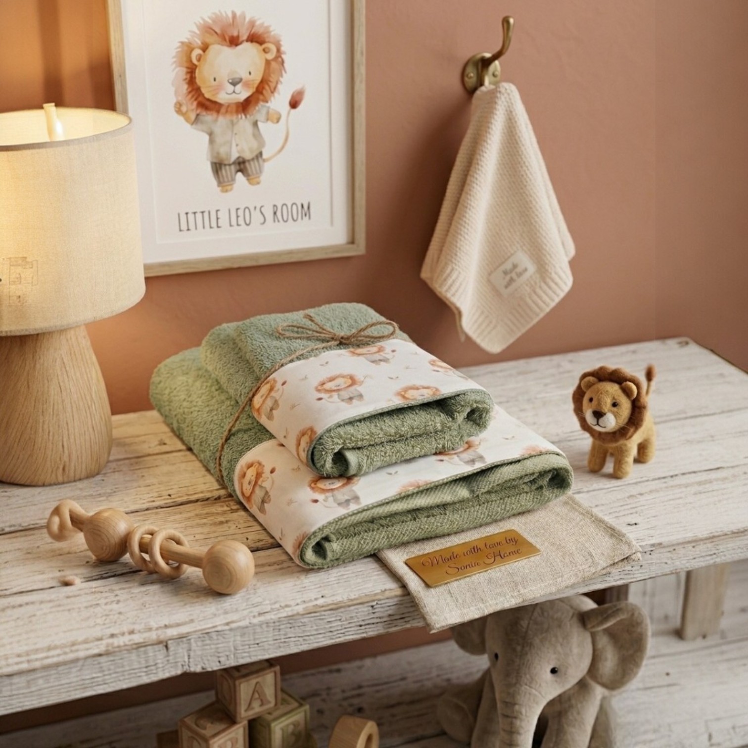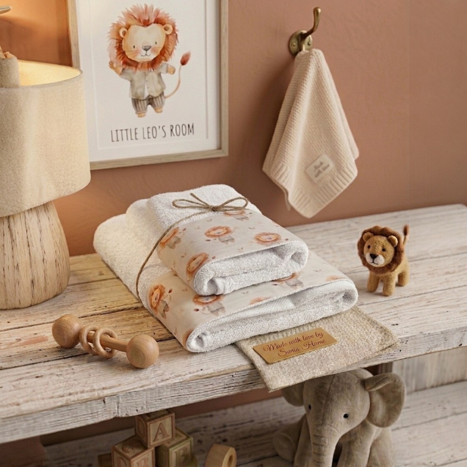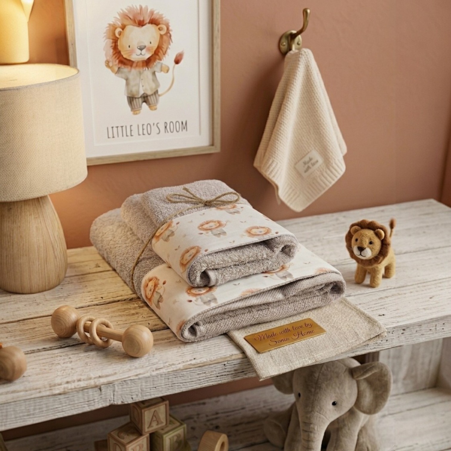 Regala al tuo piccolo un abbraccio di pura morbidezza dopo il bagnetto con il nostro set coordinato "Leo". Caratterizzato da delicate tonalità e rifiniture artigianali, questo set è progettato per unire comfort estremo e un design adorabile che trasformerà la routine quotidiana in un momento magico.